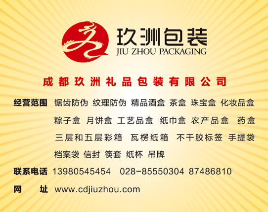 成都玖洲禮品包裝有限公司成立于2007年,辦公面積100余平米,工廠面積1000余平米,擁有專業的高素質的設計、排版、印刷專業技術人員20余人,目前主要項目為各種防偽標識、標簽、宣傳畫冊、DM單、精裝書、手提袋、不干膠、賀卡、包裝盒、禮品盒、紙袋、臺歷、掛歷等,為客戶設計、生產各種外觀精美、質量******、價位合理的印刷品,提供從印前到印后專業的全方位解決方案,廣泛應用于服飾、皮具、化妝品、美容儀器、保健品、珠寶首飾、茶葉、電子產品、五金配件及其它日用制品等行業。